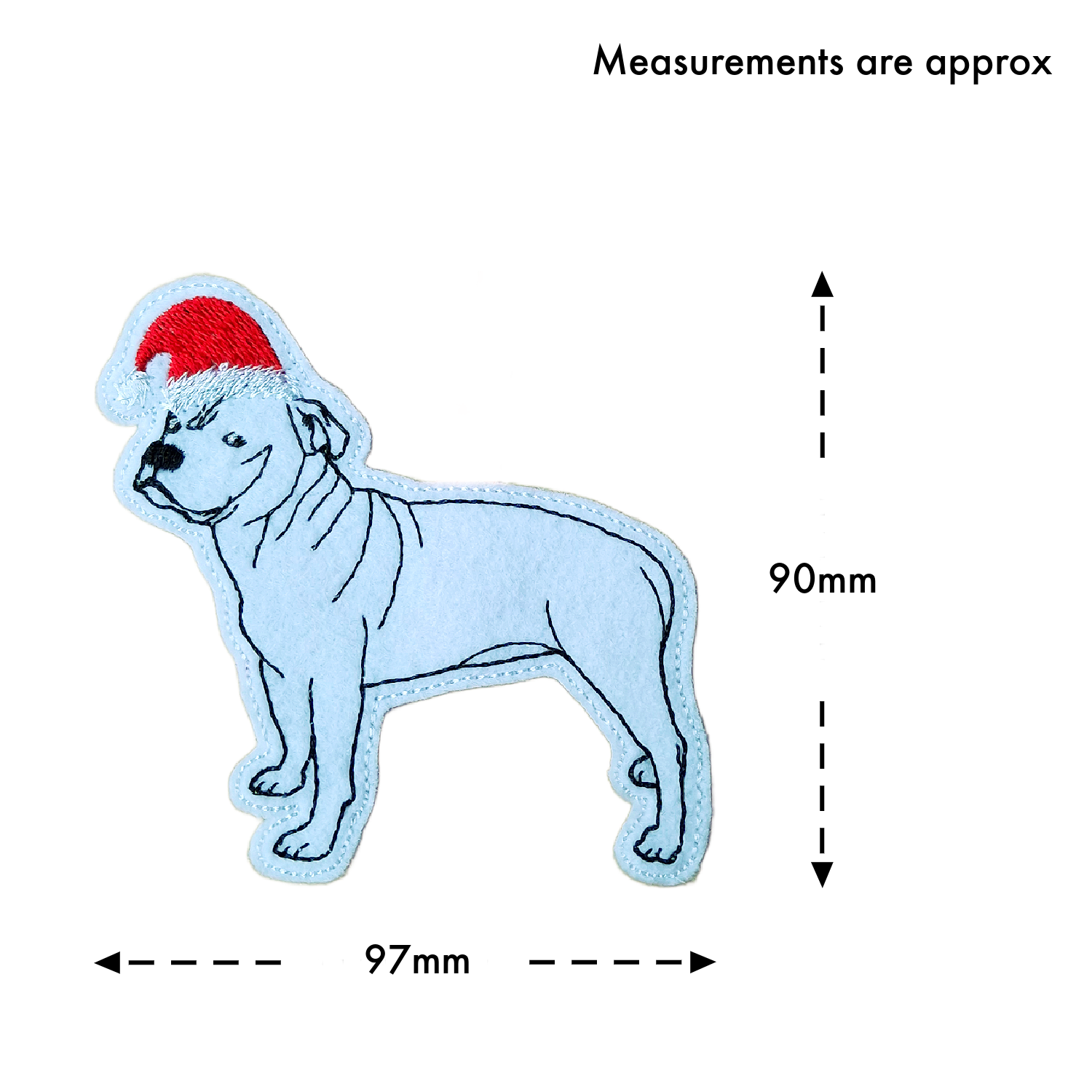 • 🎅 Features a Staffordshire Terrier design wearing a festive Santa hat