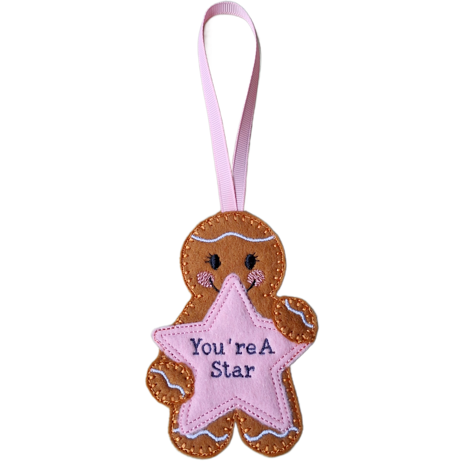 Each gingerbread is made from soft felt and finished with detailed embroidery, from the rosy cheeks to the carefully shaped star. Every piece is full of character, stitched to bring smiles and a little sparkle wherever it is displayed.