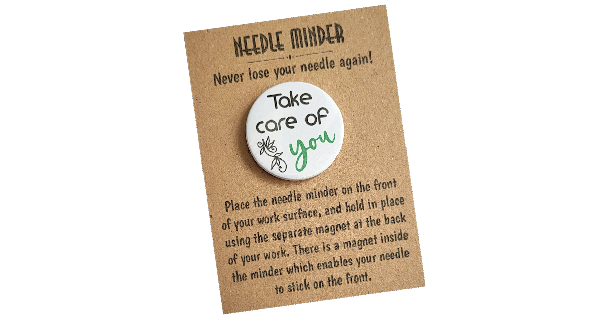 Featuring the reassuring phrase ‘Take care of you’ in a clean, uplifting design, this needle minder brings a soft moment of encouragement to your hoop, frame, or fabric. Its simple style and meaningful message make it a lovely addition to any stitching setup.