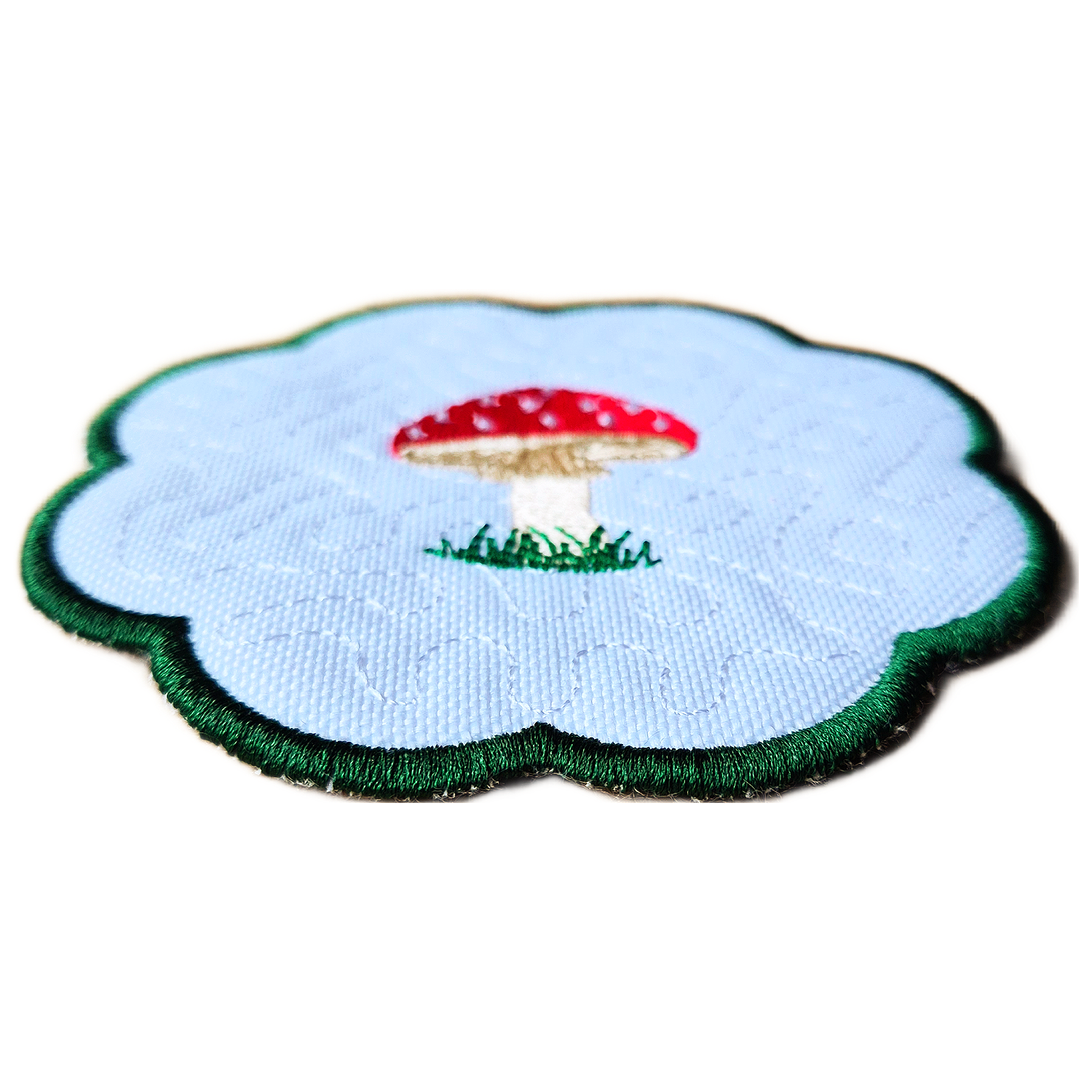 Inspired by fairytale forests and cosy woodland walks, this toadstool design celebrates imagination, comfort, and a love of nature’s quieter details. Fine embroidery brings the little mushroom to life, while the softly scalloped edge frames the design beautifully. Ideal for coffee tables, side tables, or shelves, it adds character without overwhelming your space.