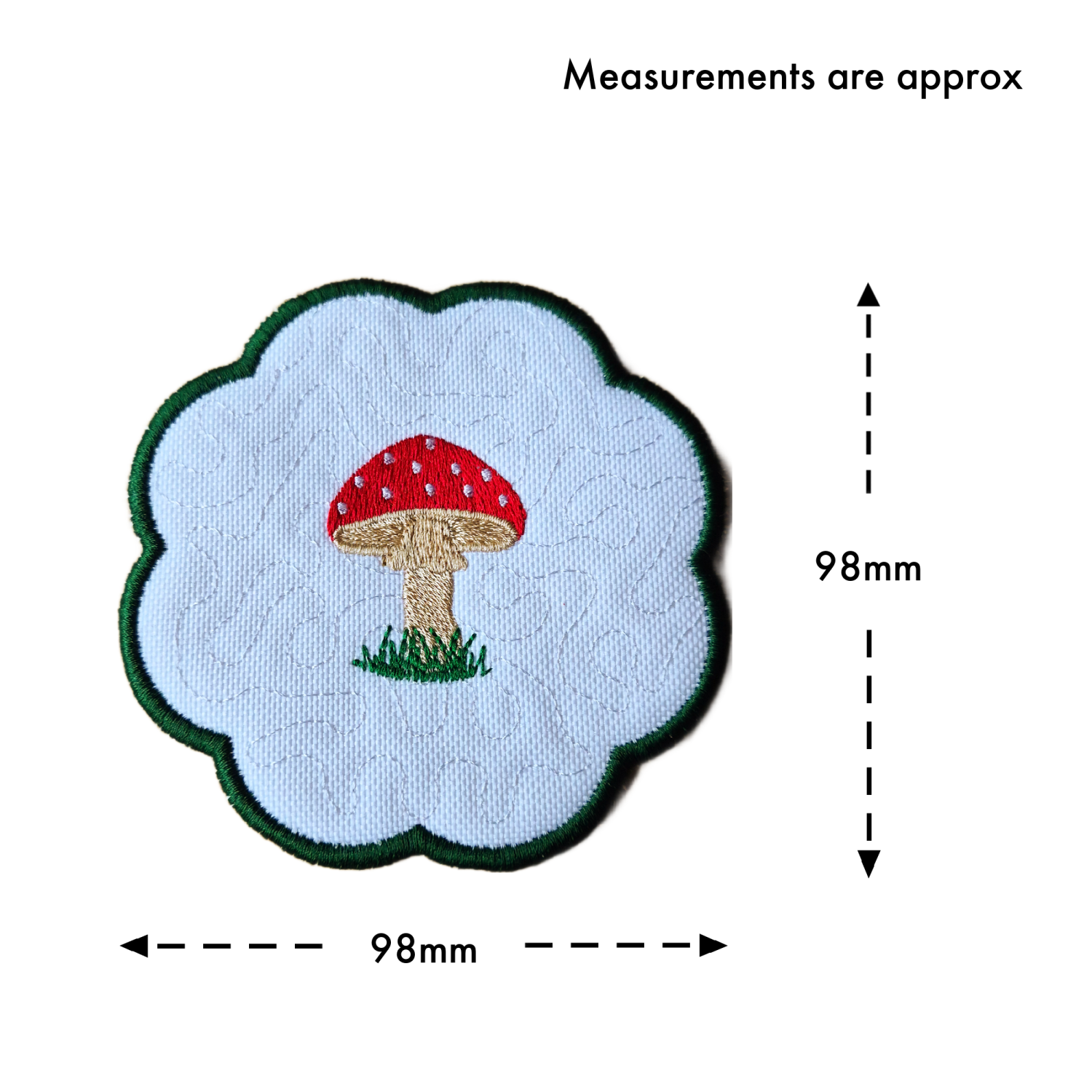 If you would like different colours for the border, stippled pattern or toadstool, please let me know your preferences in the box at checkout, specifying which part of the design each colour is for.