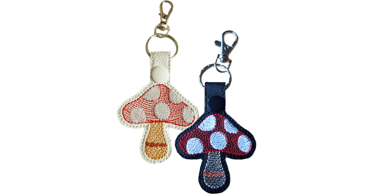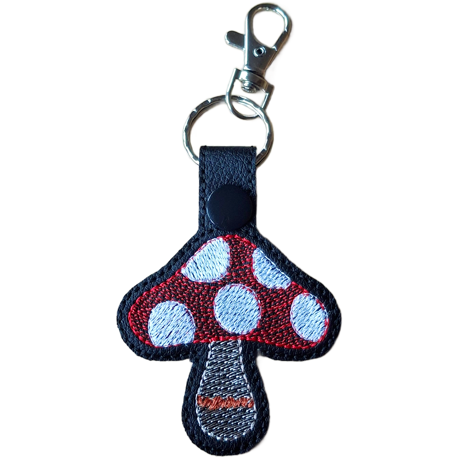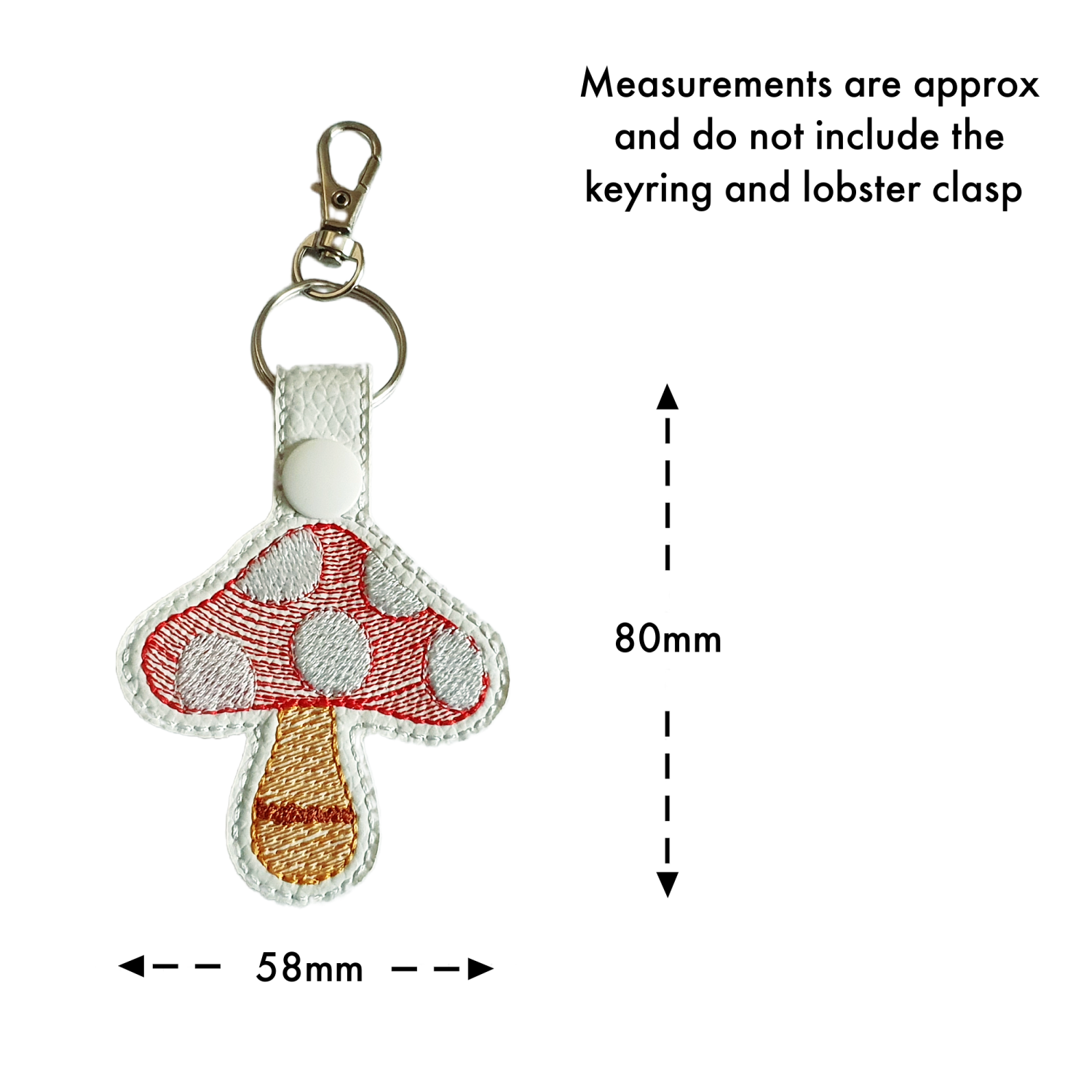 Each keyring is made from faux leather and machine embroidered with high-quality threads, bringing the toadstool’s cap, spots and stem to life with crisp, colourful stitching. Finished with a sturdy clasp, a split ring and a secure snap fastener, it is designed for everyday use while keeping its handmade, cottage-charm feel.
