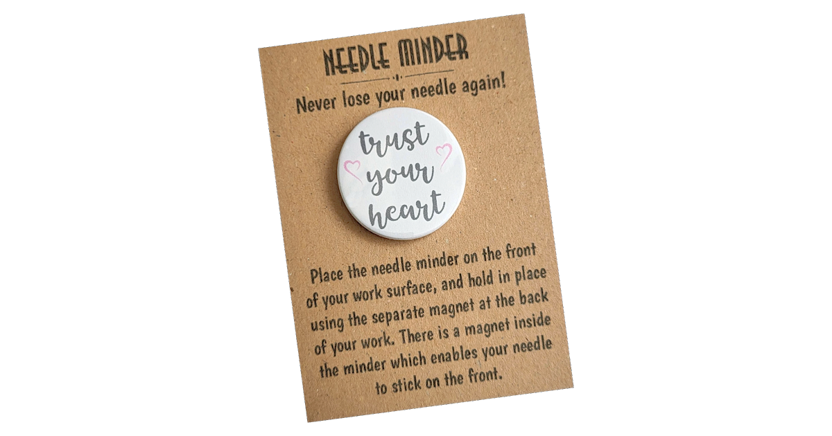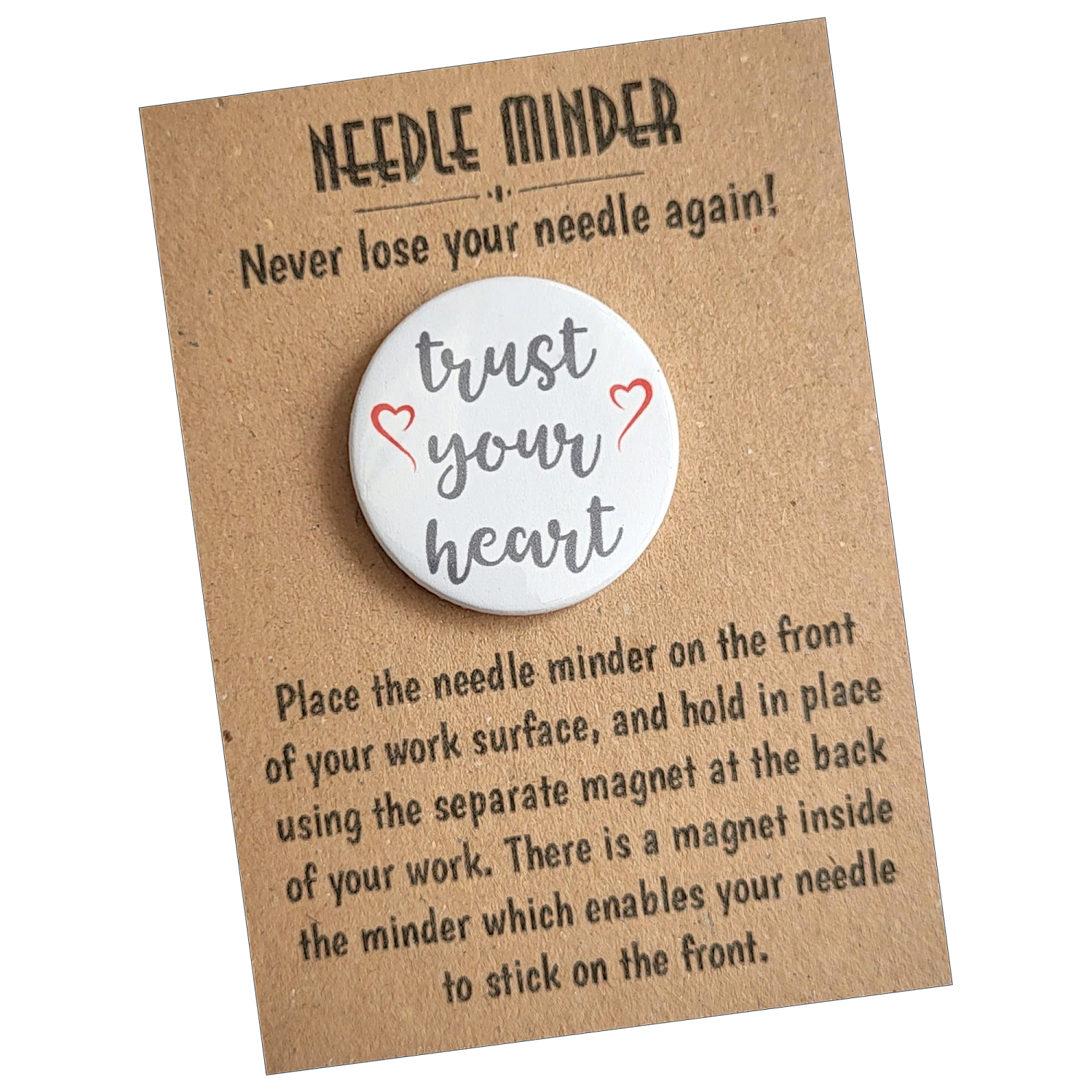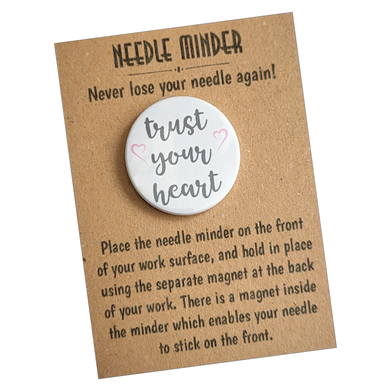 Presented on a kraft backing card and packaged in a protective sleeve, the Trust Your Heart Needle Minder makes a thoughtful gift for stitchers of all levels. Ideal for birthdays, craft friends, sewing groups, or as a gentle reminder for yourself, it is a practical keepsake designed to bring reassurance to every project.