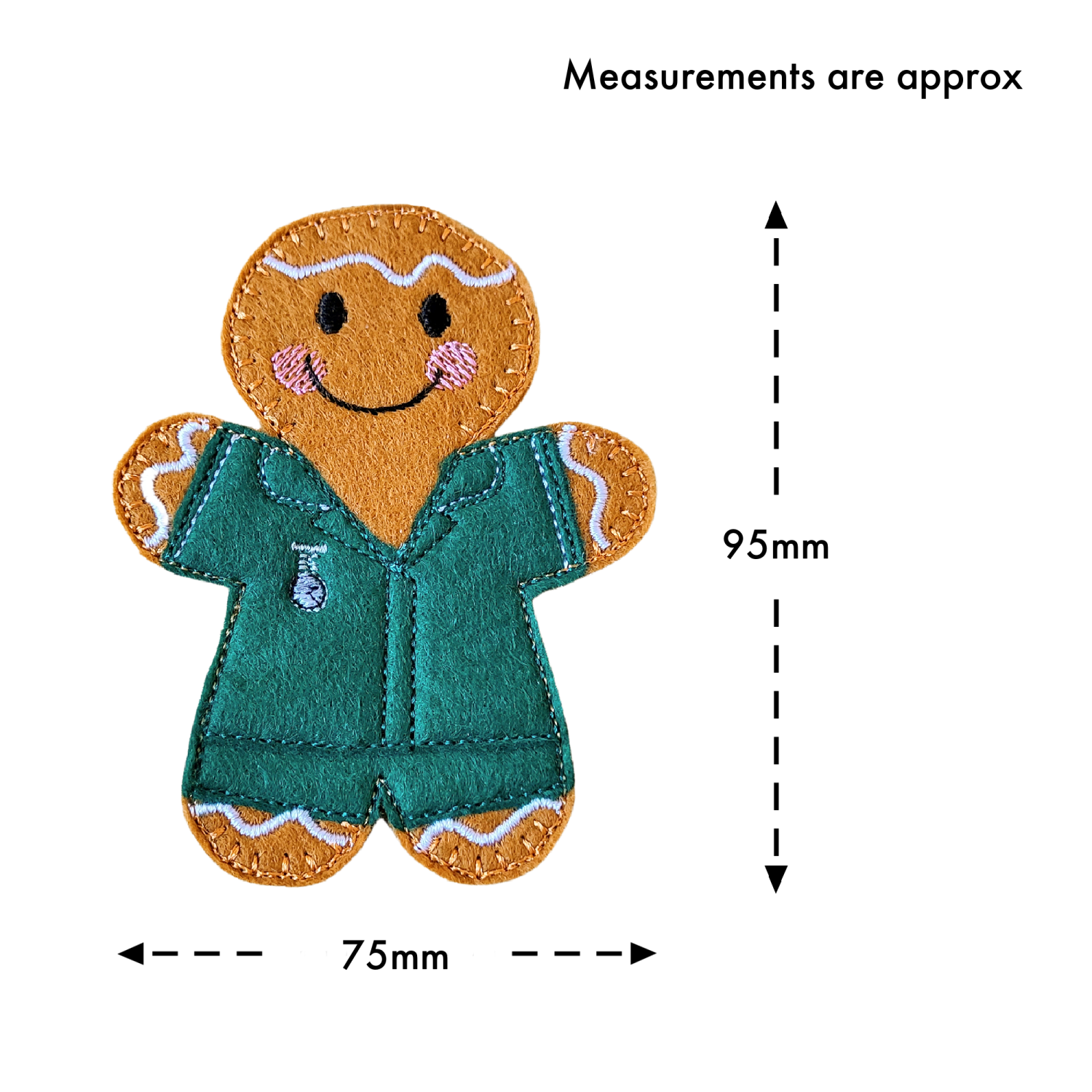 Each gingerbread is carefully handcrafted from soft, durable felt and finished with neat embroidery stitching for a lasting, high-quality finish. Measuring approximately 4” (10 cm) in height, they are the perfect size to display proudly, pop in a gift box, or slip inside a greetings card.
