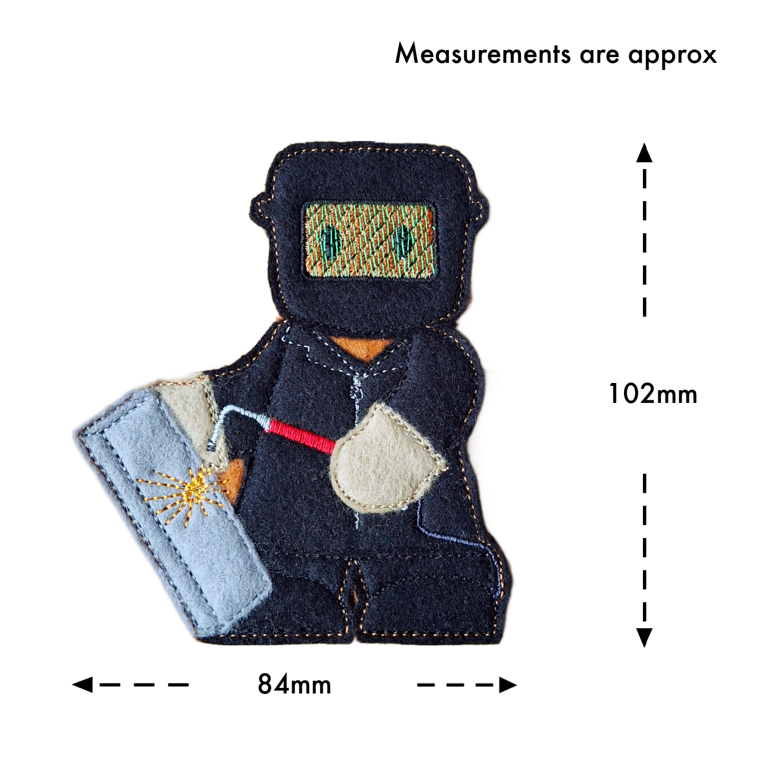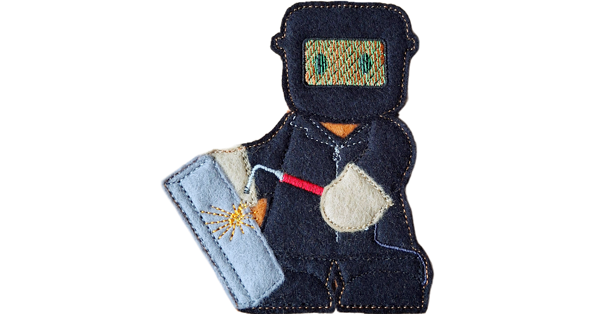 Dressed in protective overalls, sturdy boots, and a welding mask, and holding a welding torch at the ready, this character is full of personality and pride. From the carefully stitched details to the bold, practical outfit, it captures the spirit of the workshop in a playful and heart-warming way.