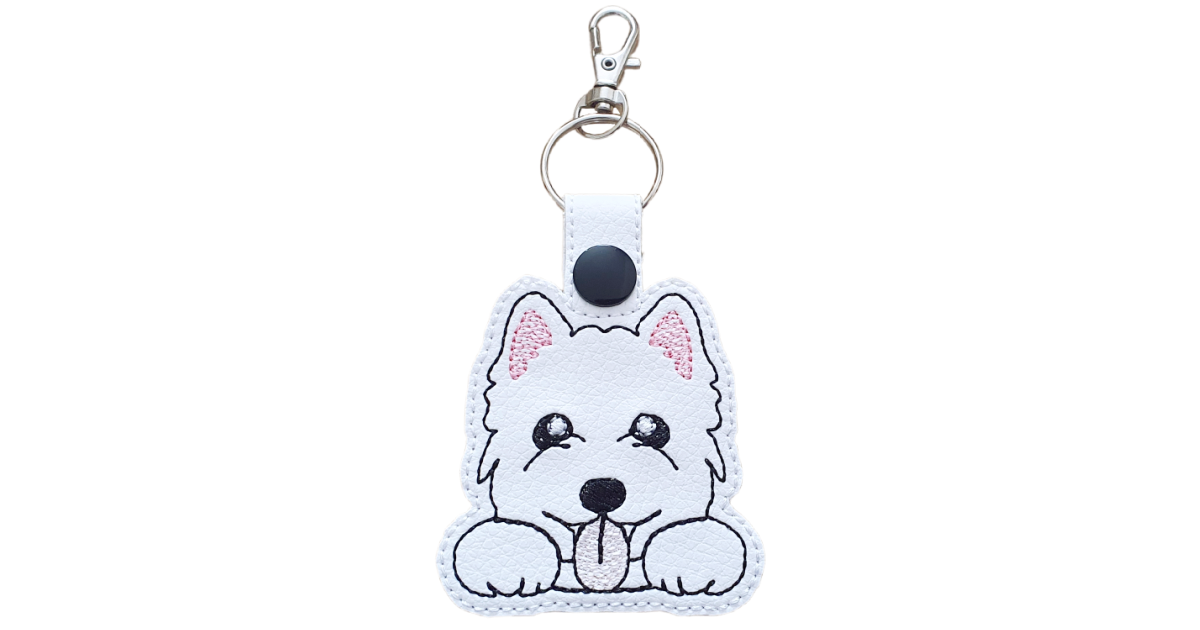 Each keyring is made from soft faux leather and decorated with expressive stitched details that capture the unmistakable charm of a Westie. From its fluffy ears to its bright eyes, every feature is designed to make you smile.