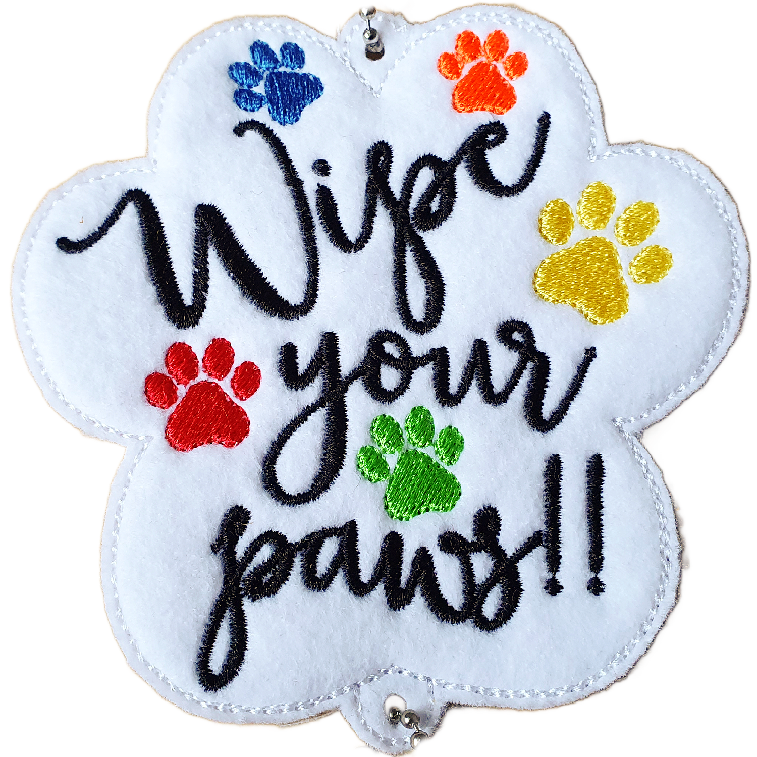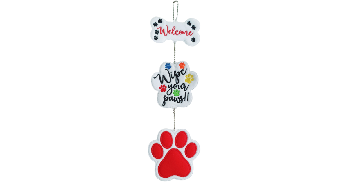 - Paw-Shaped Panel: The cheerful middle piece offers a vibrant reminder with the phrase ‘Wipe Your Paws!!’ embroidered in bright, eye-catching colours.