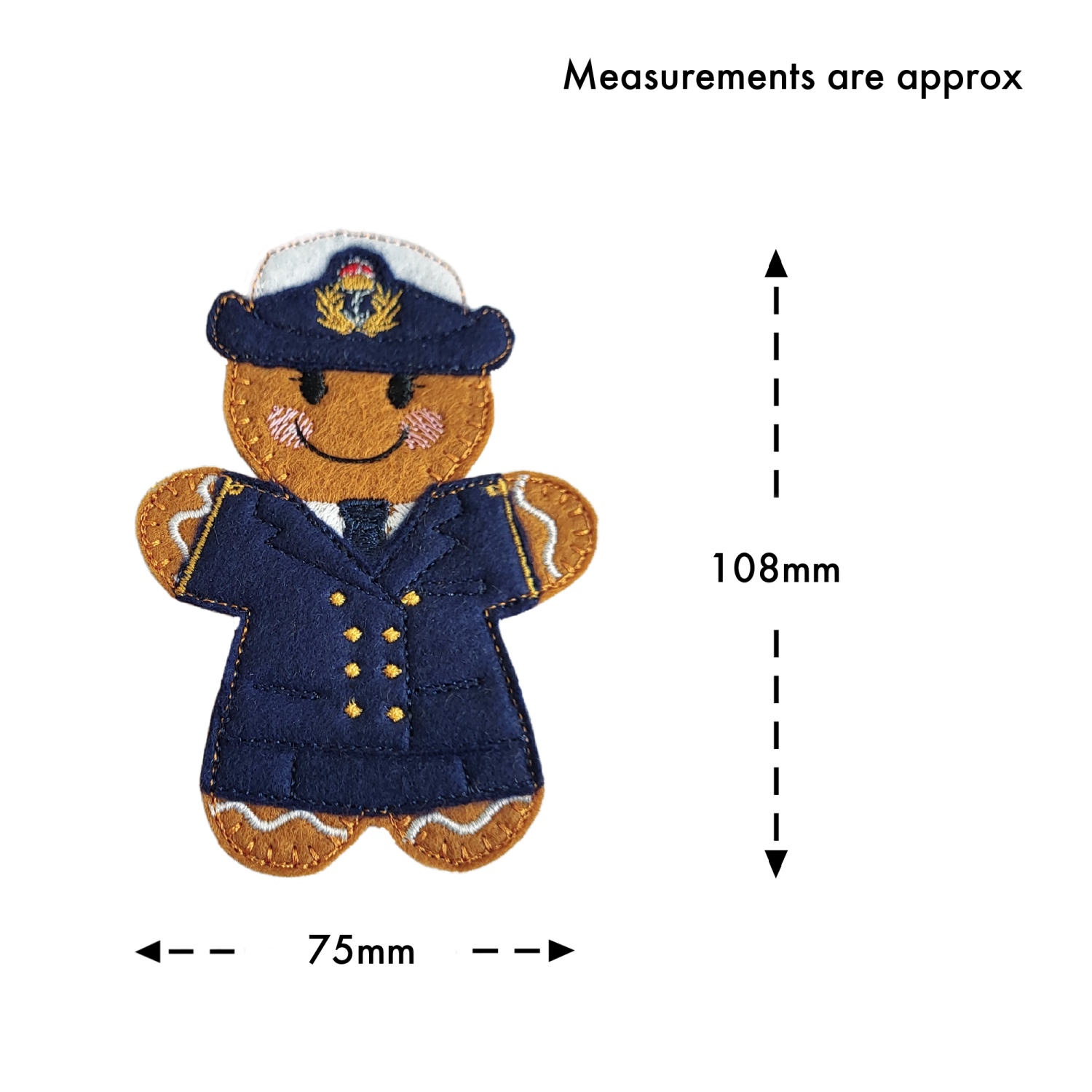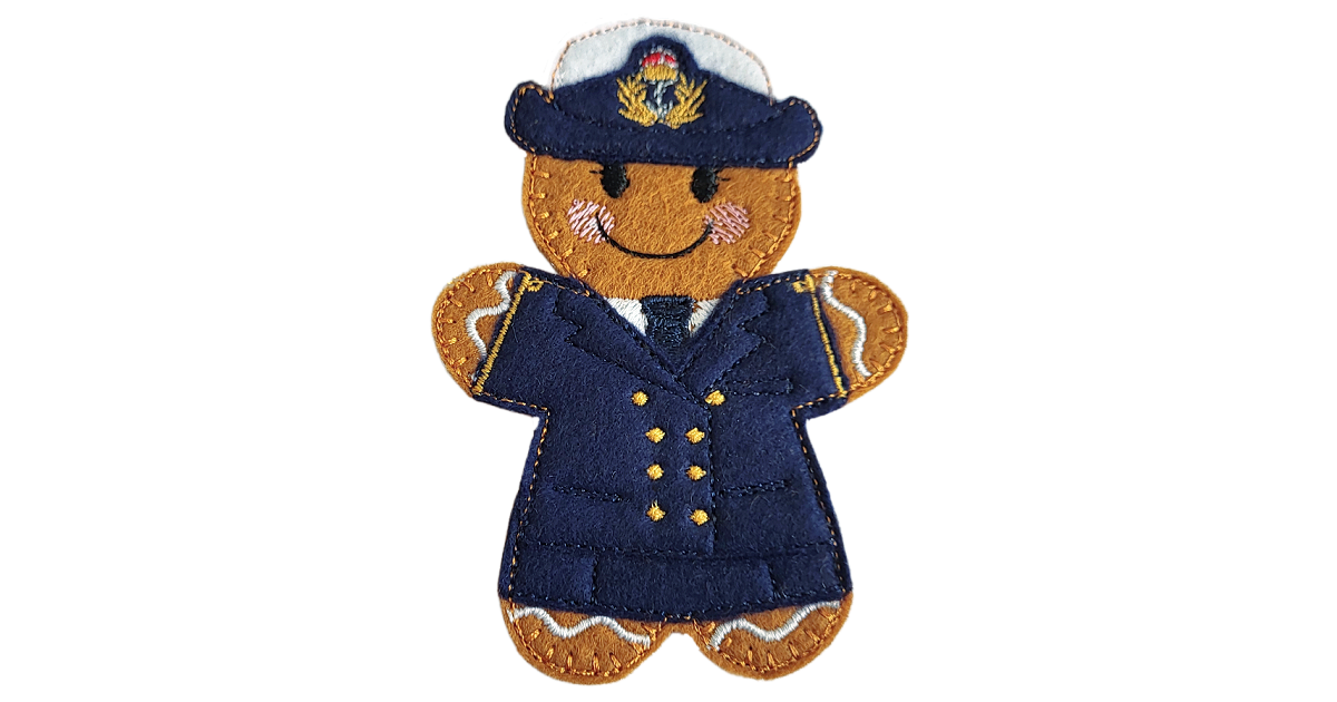 Each gingerbread is lovingly handmade from soft felt and finished with high-quality embroidery threads. From the carefully stitched jacket and cap to the rosy-cheeked smile, every piece is created with patience, precision, and pride – making each one a unique keepsake that celebrates service and strength.