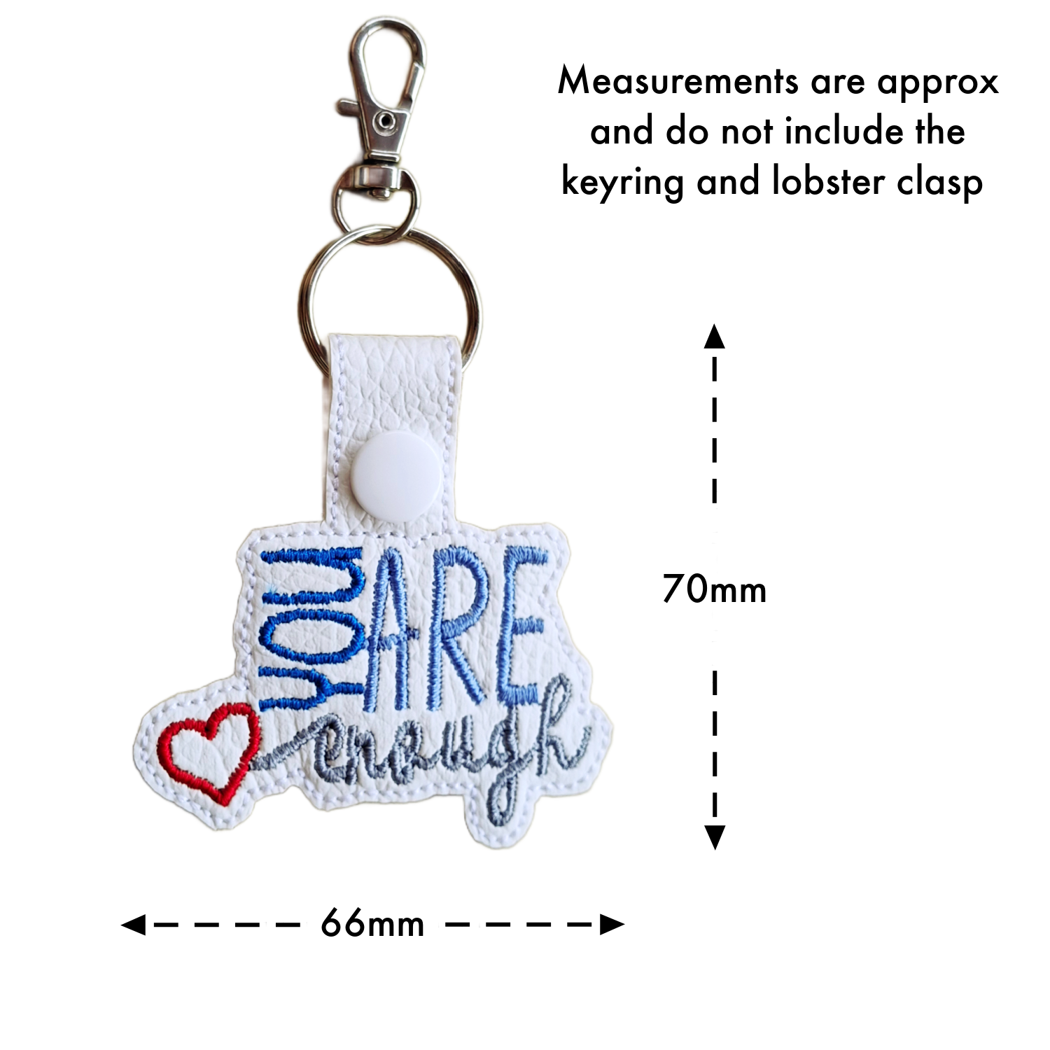 The You Are Enough Keyring is more than a mere accessory; it is a daily affirmation of self-love and acceptance. By incorporating this little token into your life or gifting it to someone special, you celebrate the idea that we are inherently enough, just as we are. Don’t wait – let this keyring serve as a beautiful reminder that you are deserving of all the love, respect, and happiness that life has to offer. Your journey of self-acceptance begins with a single step, and sometimes, that starts with a keyring.