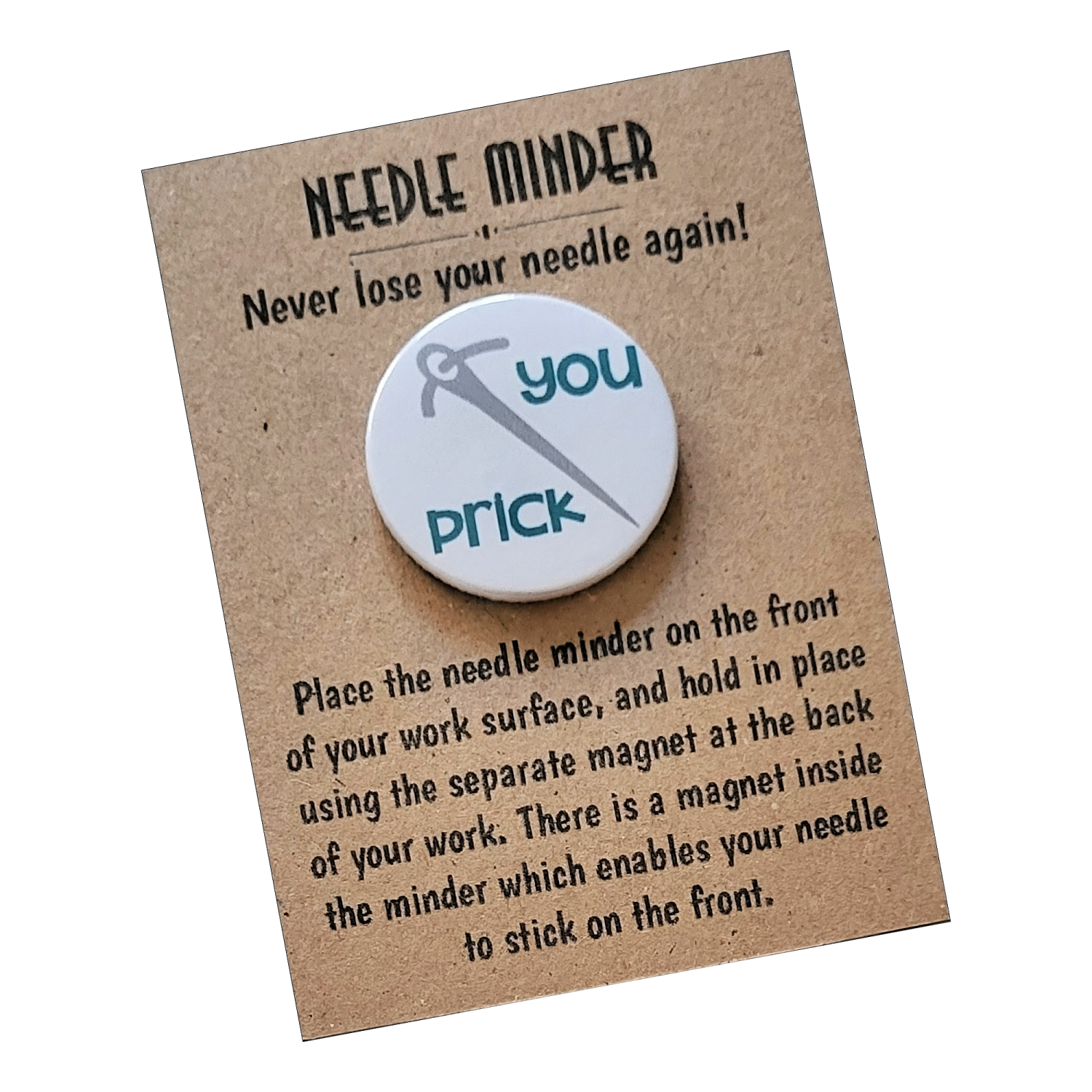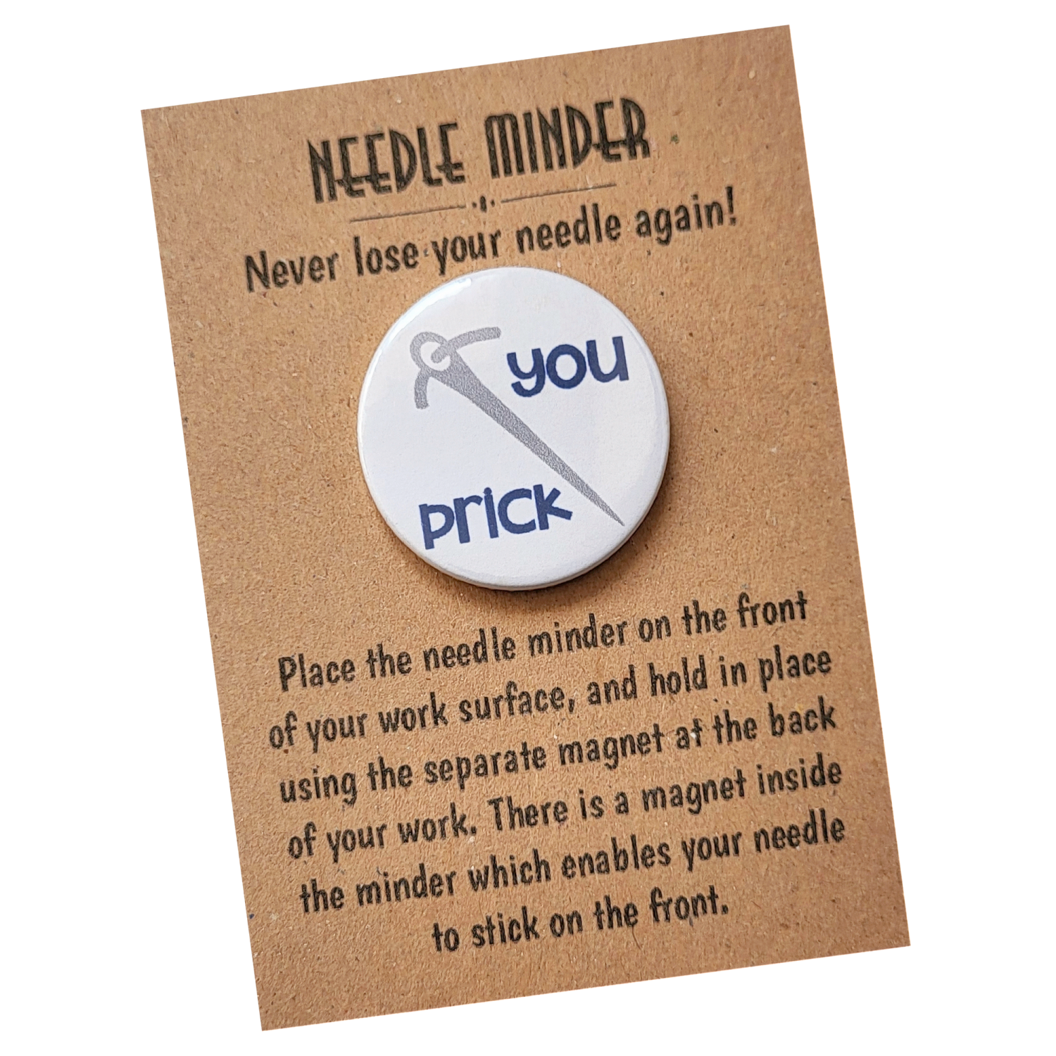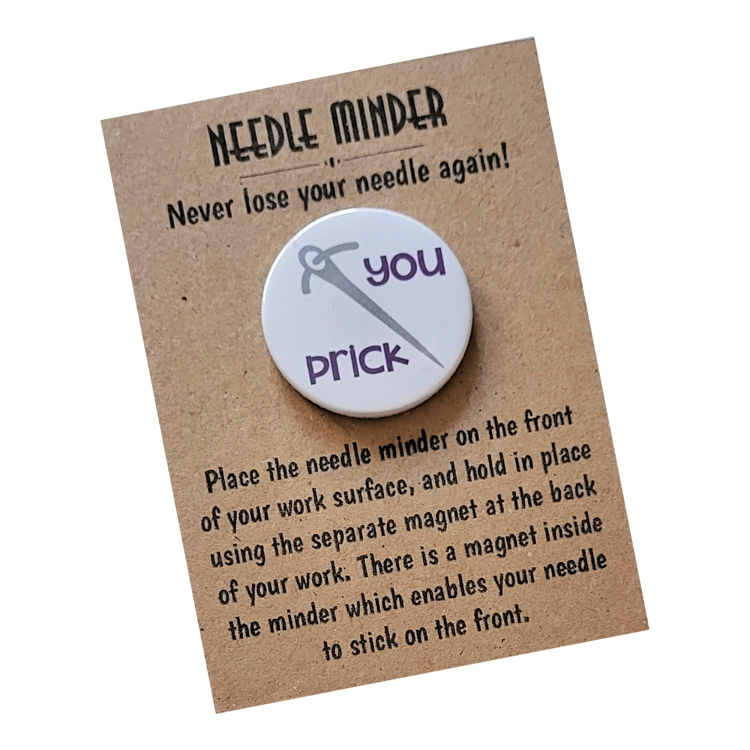 Presented on a kraft backing card and packaged in a protective sleeve, the You Prick Needle Minder makes a brilliant gift for stitchers who enjoy a bit of sarcasm with their sewing. Ideal for craft friends, sewing groups, birthdays, or as a treat for yourself, it is a practical keepsake designed to raise a smile as well as keep your needle in place.